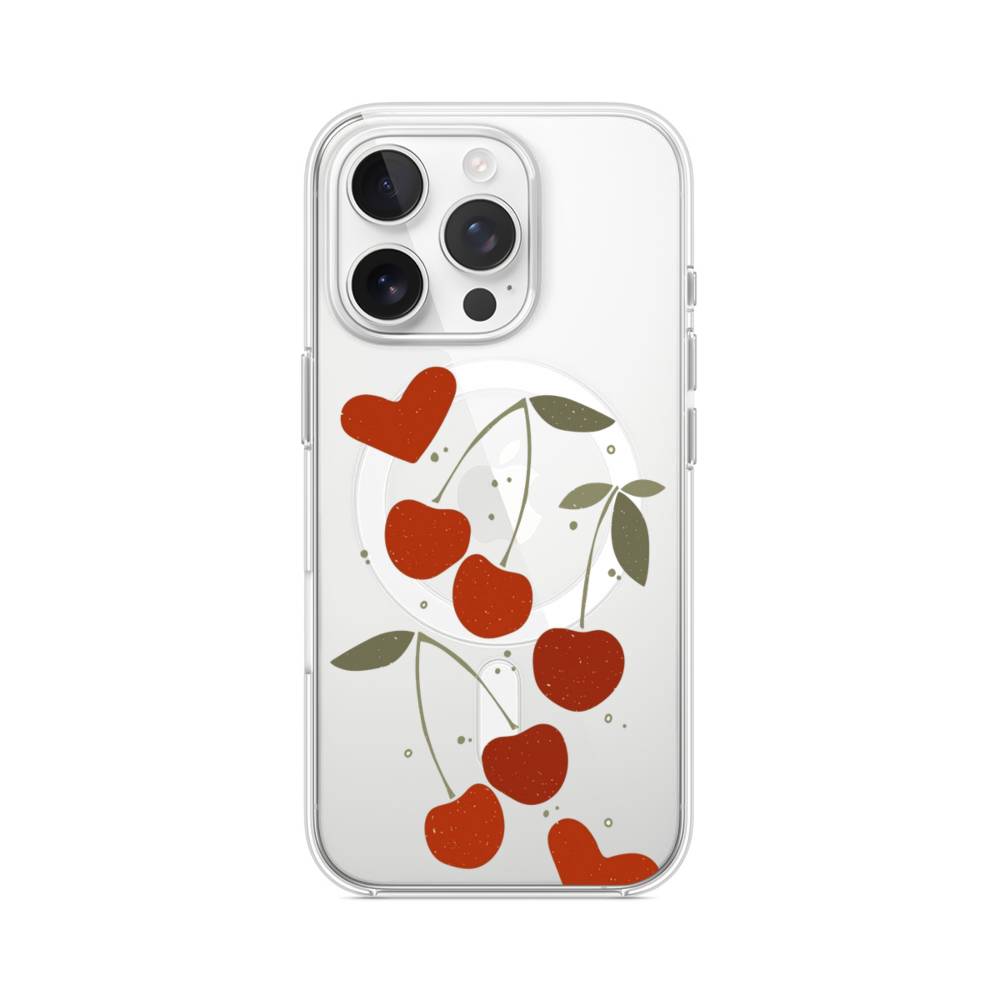 Herzförmige Kirsche iPhone 14 Pro MagSafe‑kompatible Silikonhülle mit Kamera‑Kickstand● Sehr robust & langlebig