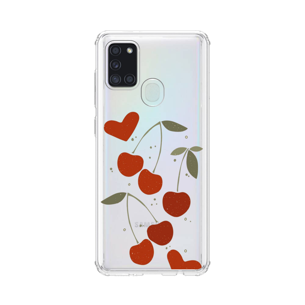 Herzförmige Kirsche Samsung Galaxy A21s Silikon Hülle● Sehr robust & langlebig