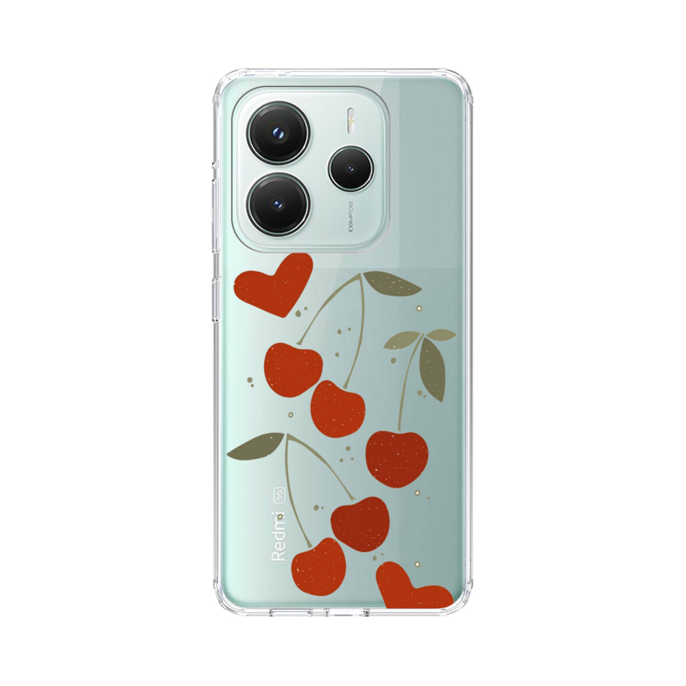Herzförmige Kirsche Xiaomi Redmi Note 14 Silikon Hülle● Sehr robust & langlebig