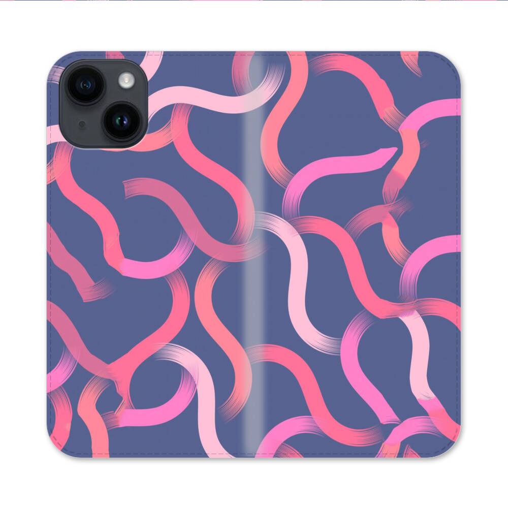 Pink Linien Apple iPhone 14 Flip Case● Seitlich klappbar