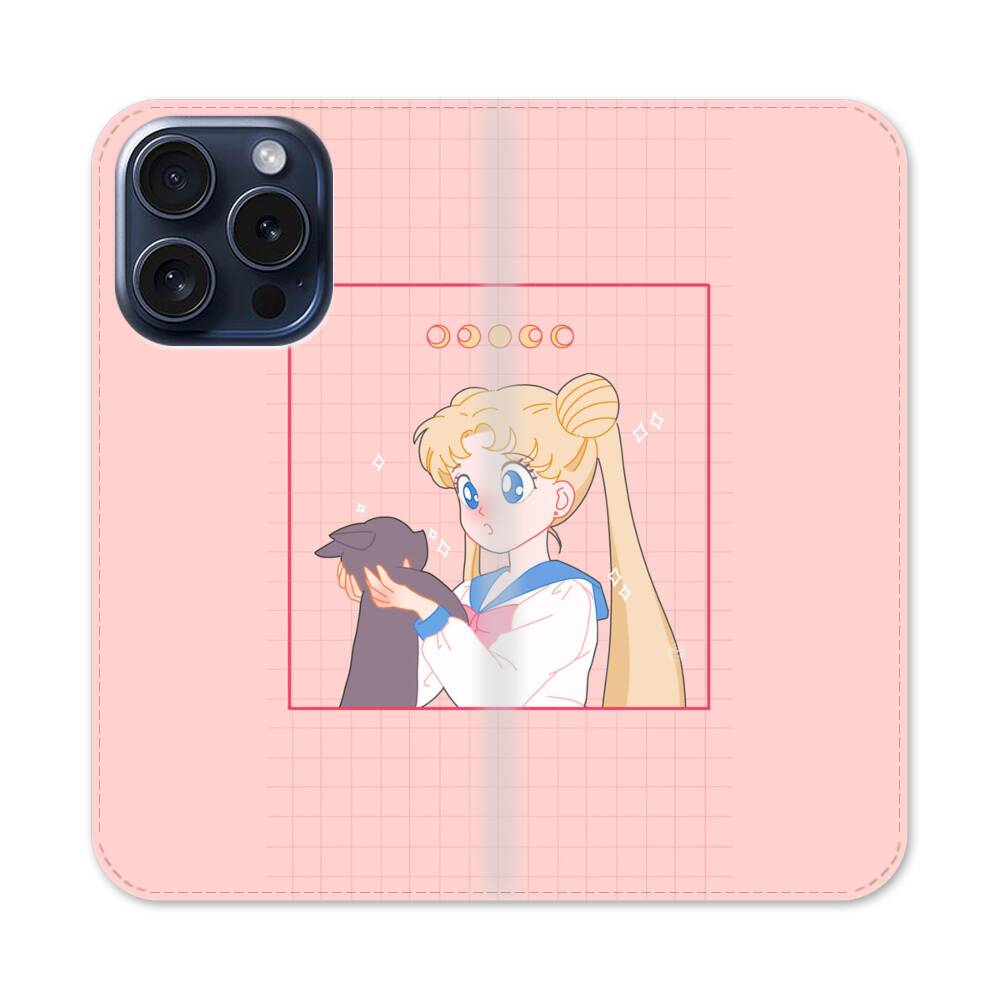 Sailor Moon Illustration Apple iPhone 15 Pro Flip Case● Seitlich klappbar