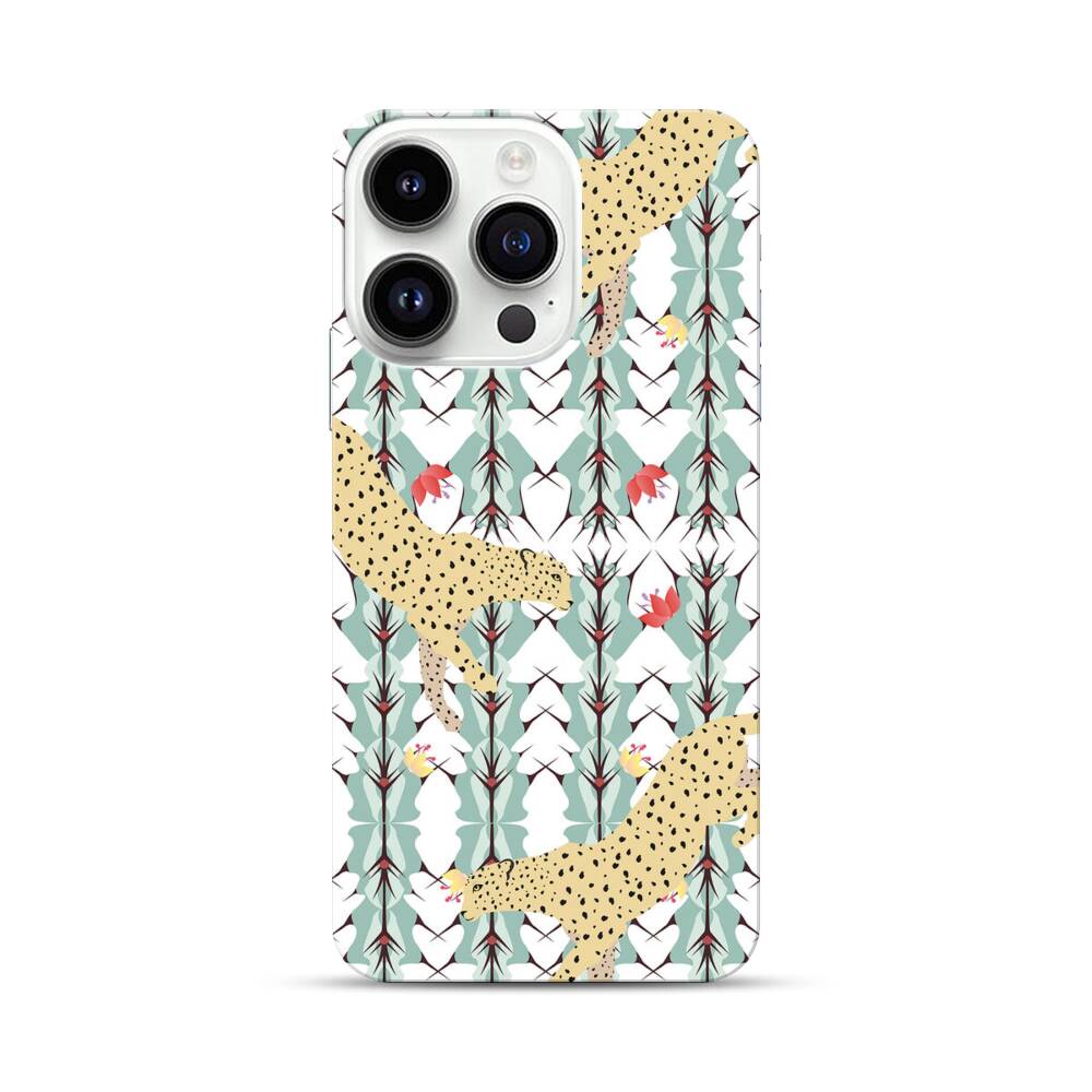 Leopard auf der Kaktusse Hintergrund Apple iPhone 14 Pro Hülle● Rundum bedruckbar