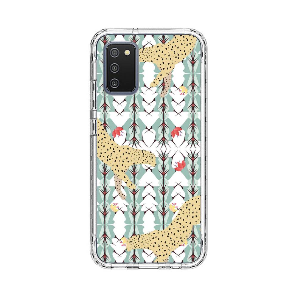 Leopard auf der Kaktusse Hintergrund Samsung Galaxy A02s Silikon Hülle● Sehr robust & langlebig