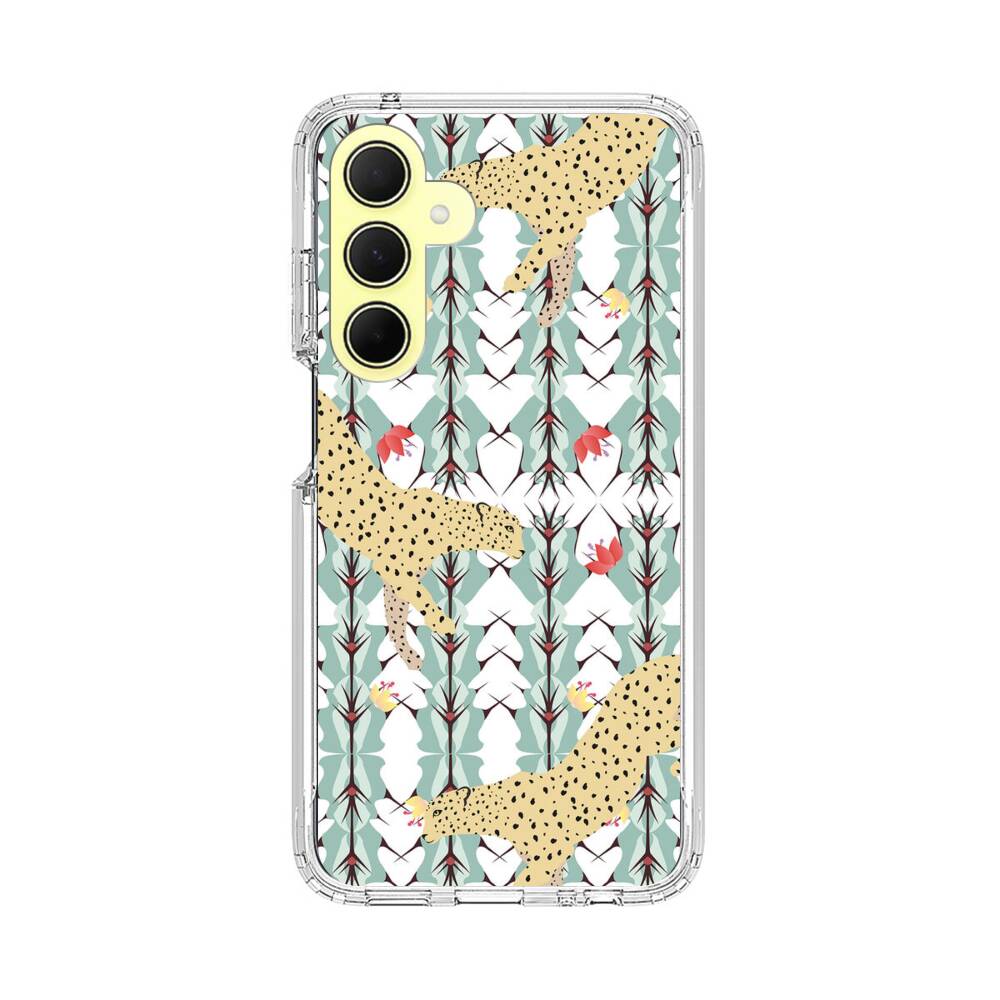 Leopard auf der Kaktusse Hintergrund Samsung Galaxy A35 Silikon Hülle● Sehr robust & langlebig