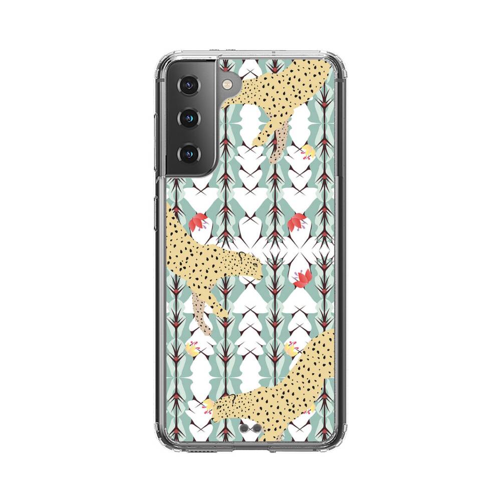 Leopard auf der Kaktusse Hintergrund Samsung Galaxy S21 Plus Silikon Hülle● Sehr robust & langlebig