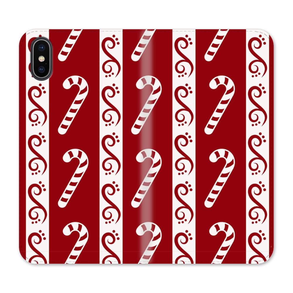 Festliche Gehstöcke Muster iPhone XS Wallet Leder Hülle● Seitlich klappbar