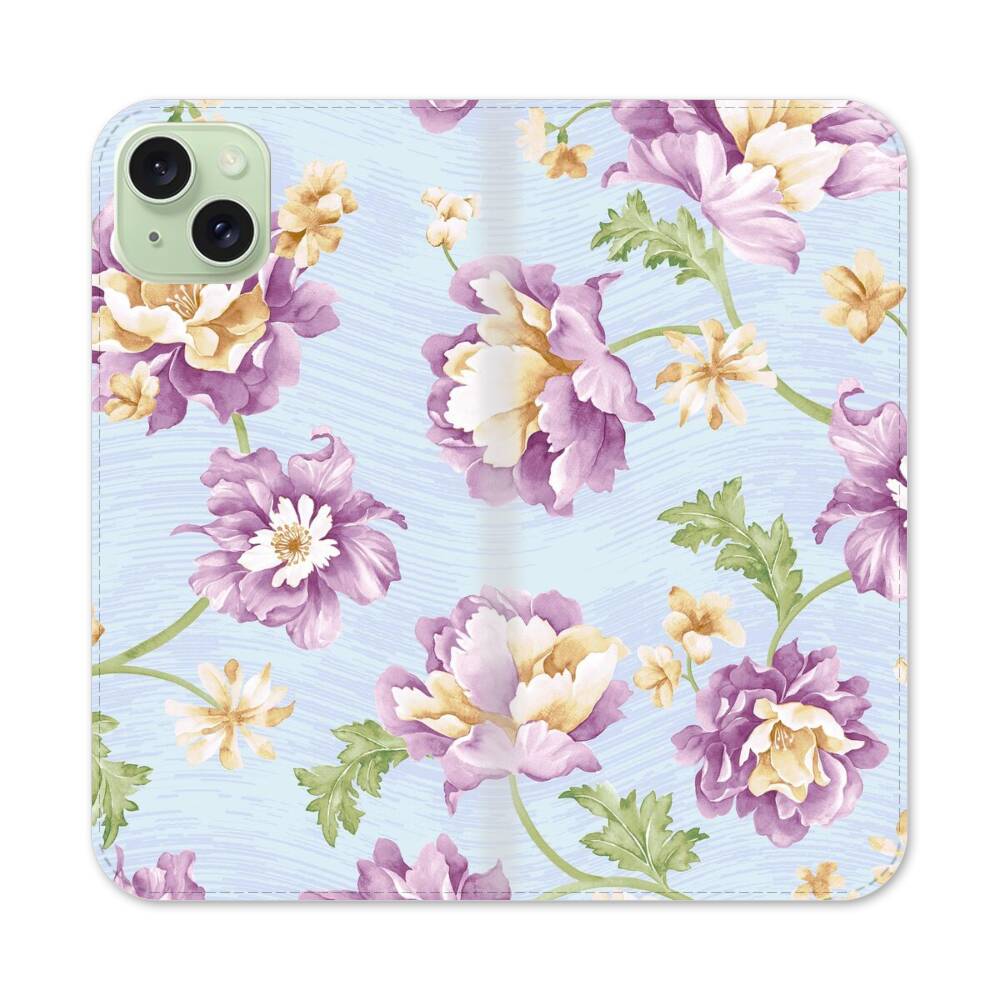 Klassische Pfingstrose Apple iPhone 15 Plus Flip Case● Seitlich klappbar