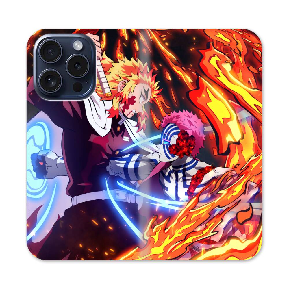 Akaza vs Kyojuro Rengoku Apple iPhone 15 Pro Flip Case● Seitlich klappbar
