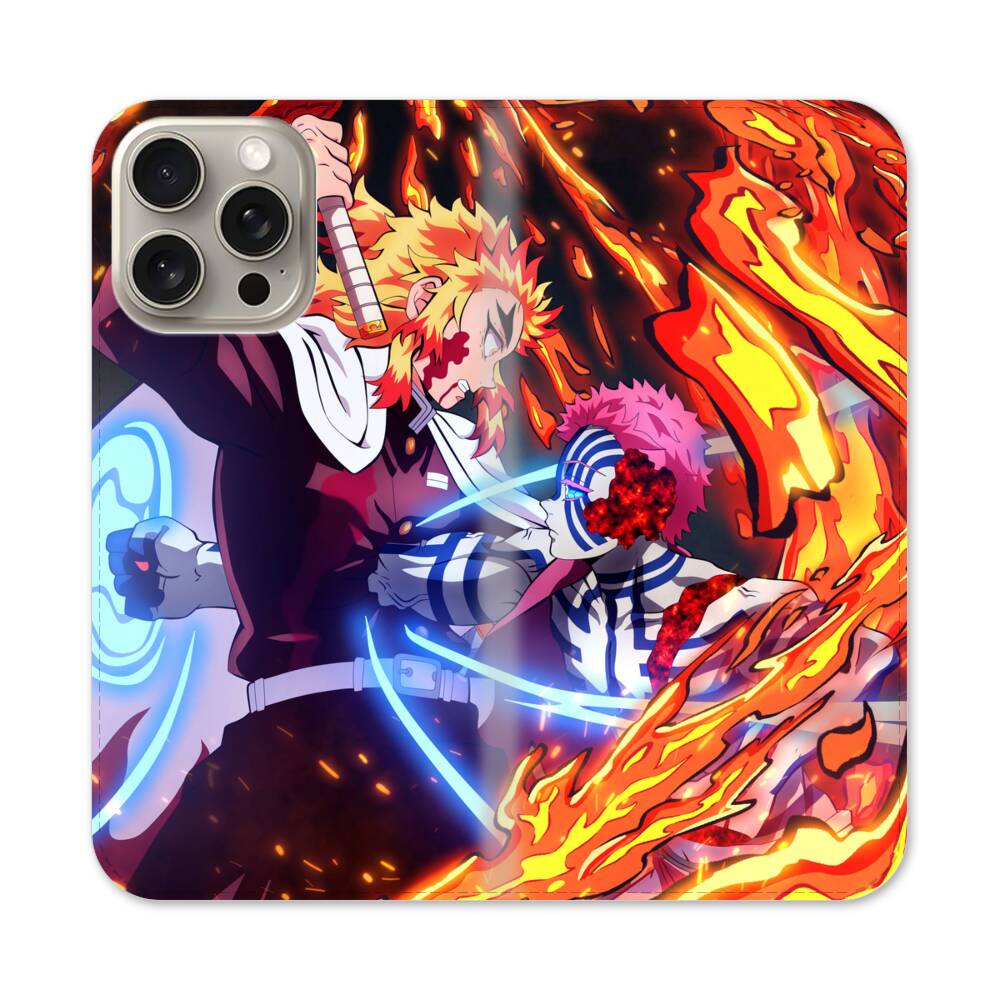 Akaza vs Kyojuro Rengoku Apple iPhone 15 Pro Max Flip Case● Seitlich klappbar