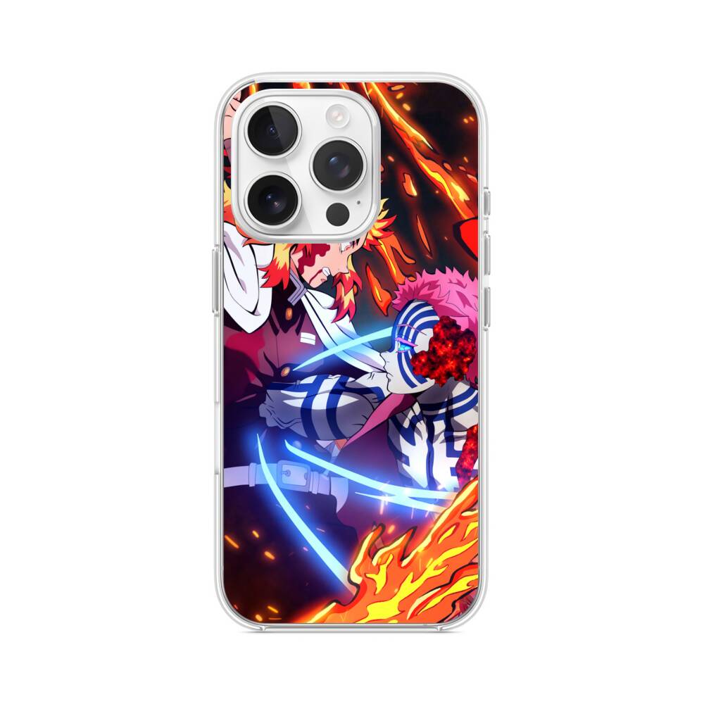 Akaza vs Kyojuro Rengoku iPhone 15 Pro MagSafe‑kompatible Silikonhülle mit Kamera‑Kickstand● Sehr robust & langlebig
