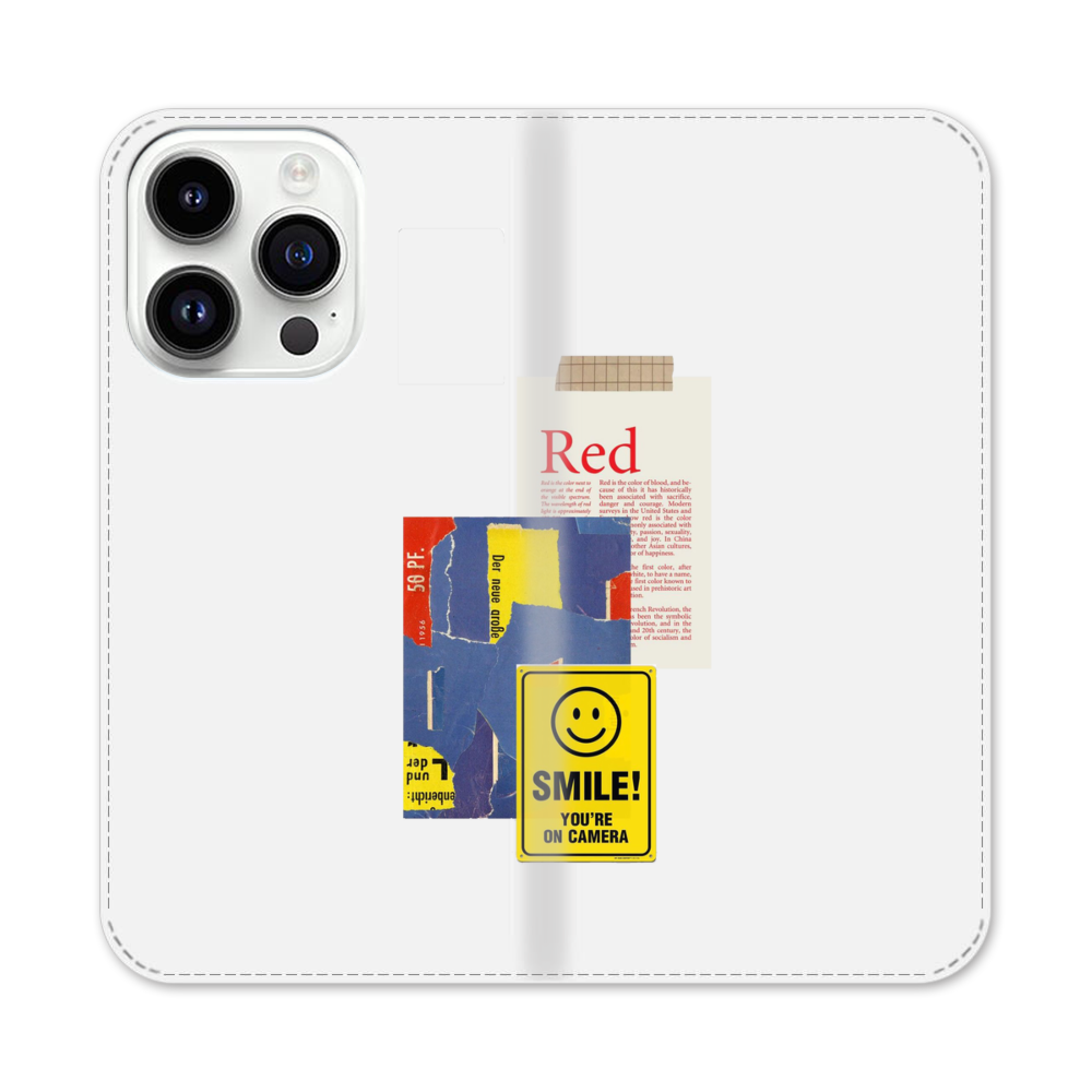 Beschriftung Collagen Apple iPhone 14 Pro Flip Case● Seitlich klappbar