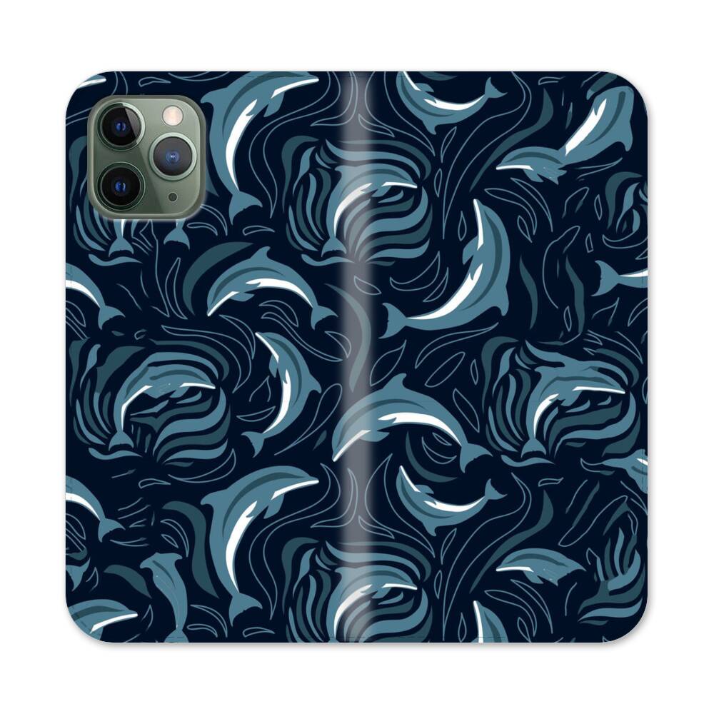 Cartoon Nahtlose Muster Mit Delfinen Apple iPhone 11 Pro Max Flip Case● Seitlich klappbar