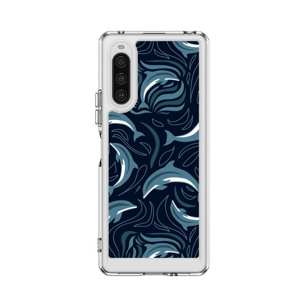 Cartoon Nahtlose Muster Mit Delfinen Sony Xperia 10 V Silikon Hülle● Sehr robust & langlebig