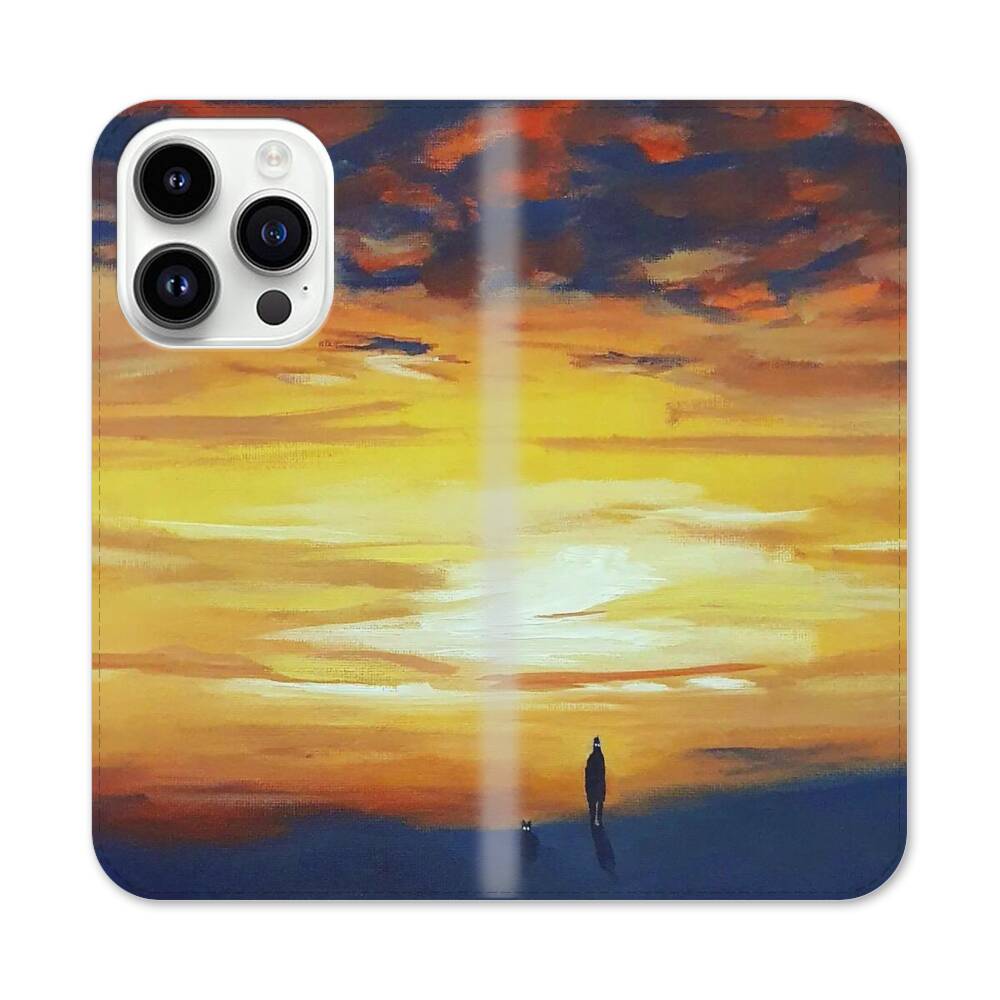 Einsamer Junge bei dem Sonnenuntergang Apple iPhone 14 Pro Flip Case● Seitlich klappbar