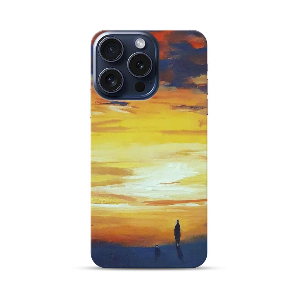 Einsamer Junge bei dem Sonnenuntergang Apple iPhone 15 Pro Hülle● Rundum bedruckbar