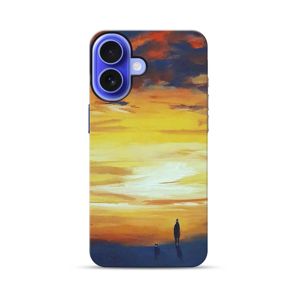 Einsamer Junge bei dem Sonnenuntergang Apple iPhone 16 Hybrid Case● Rundum bedruckbar