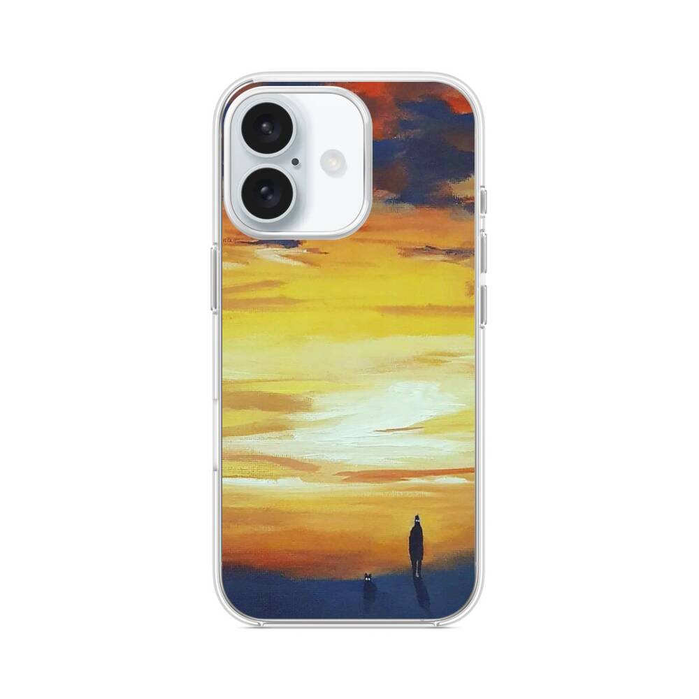 Einsamer Junge bei dem Sonnenuntergang iPhone 16 MagSafe‑kompatible Silikonhülle mit Kamera‑Kickstand● Sehr robust & langlebig