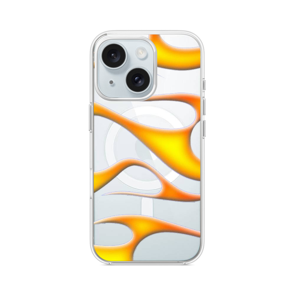 Goldene Flamme iPhone 14 MagSafe‑kompatible Silikonhülle mit Kamera‑Kickstand● Sehr robust & langlebig