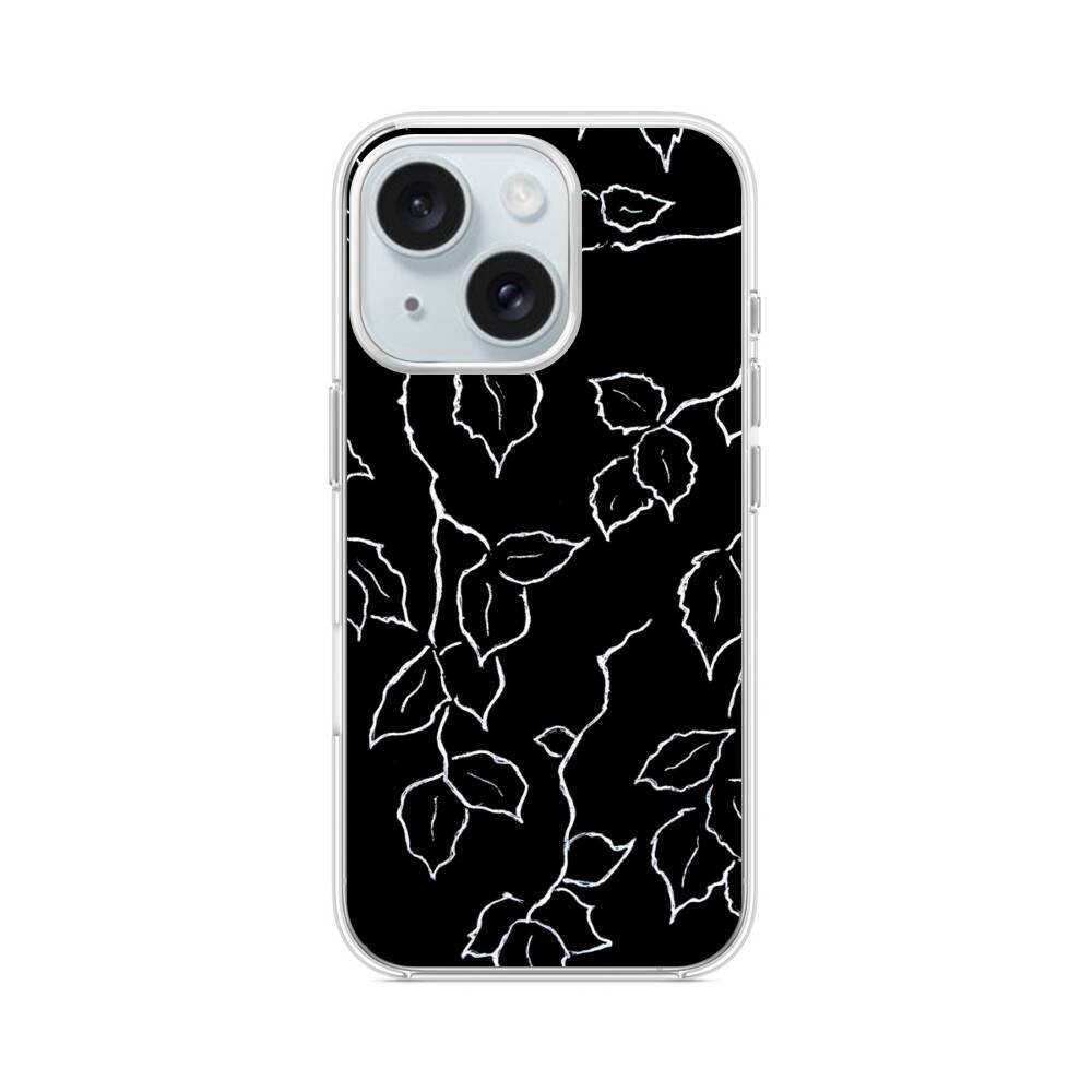 Schwarze Blätter iPhone 14 MagSafe‑kompatible Silikonhülle mit Kamera‑Kickstand● Sehr robust & langlebig