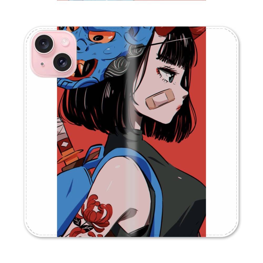 Mädchen mit Maske Apple iPhone 15 Flip Case● Seitlich klappbar