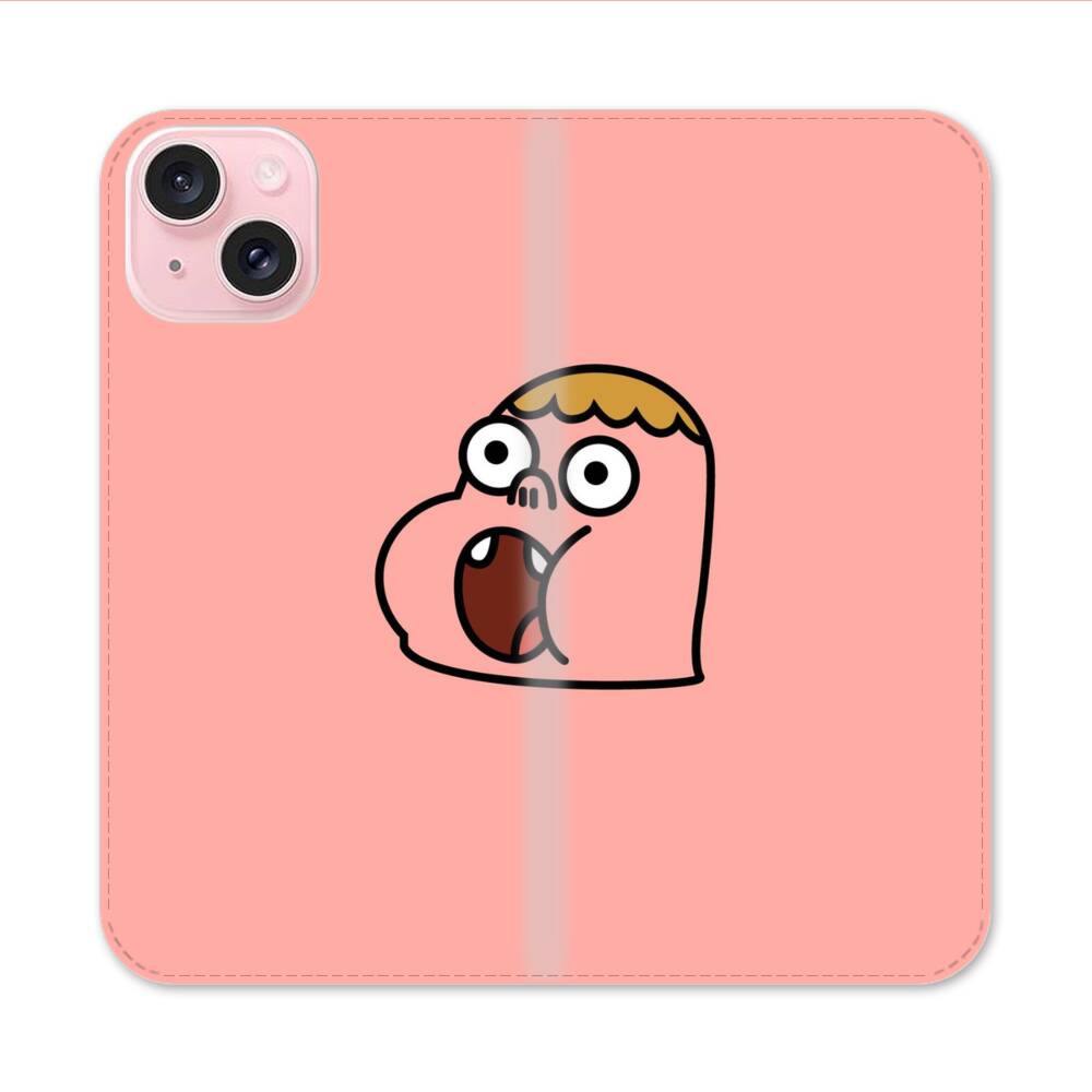 Lustiger Cartoon Kopf Apple iPhone 15 Flip Case● Seitlich klappbar