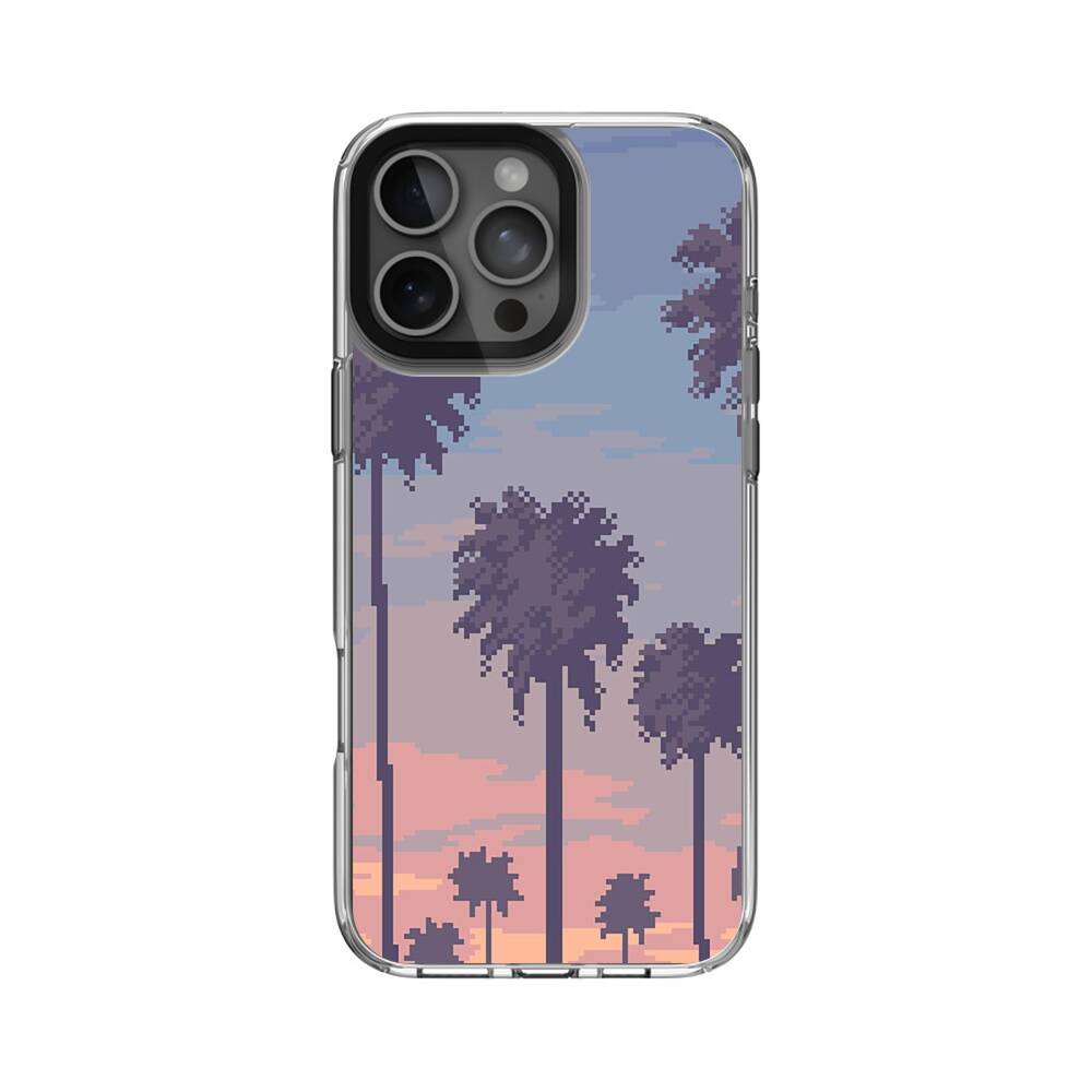 Verpixelte Palmen Apple iPhone 16 Pro Max Silikon Hülle● Sehr robust & langlebig