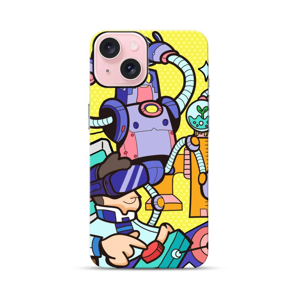 Comic Roboter Apple iPhone 15 Hybrid Case● Rundum bedruckbar