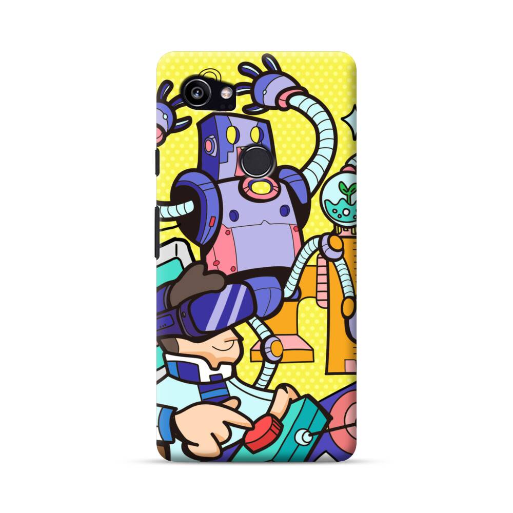 Comic Roboter Google Pixel 2 XL Hülle● Rundum bedruckbar