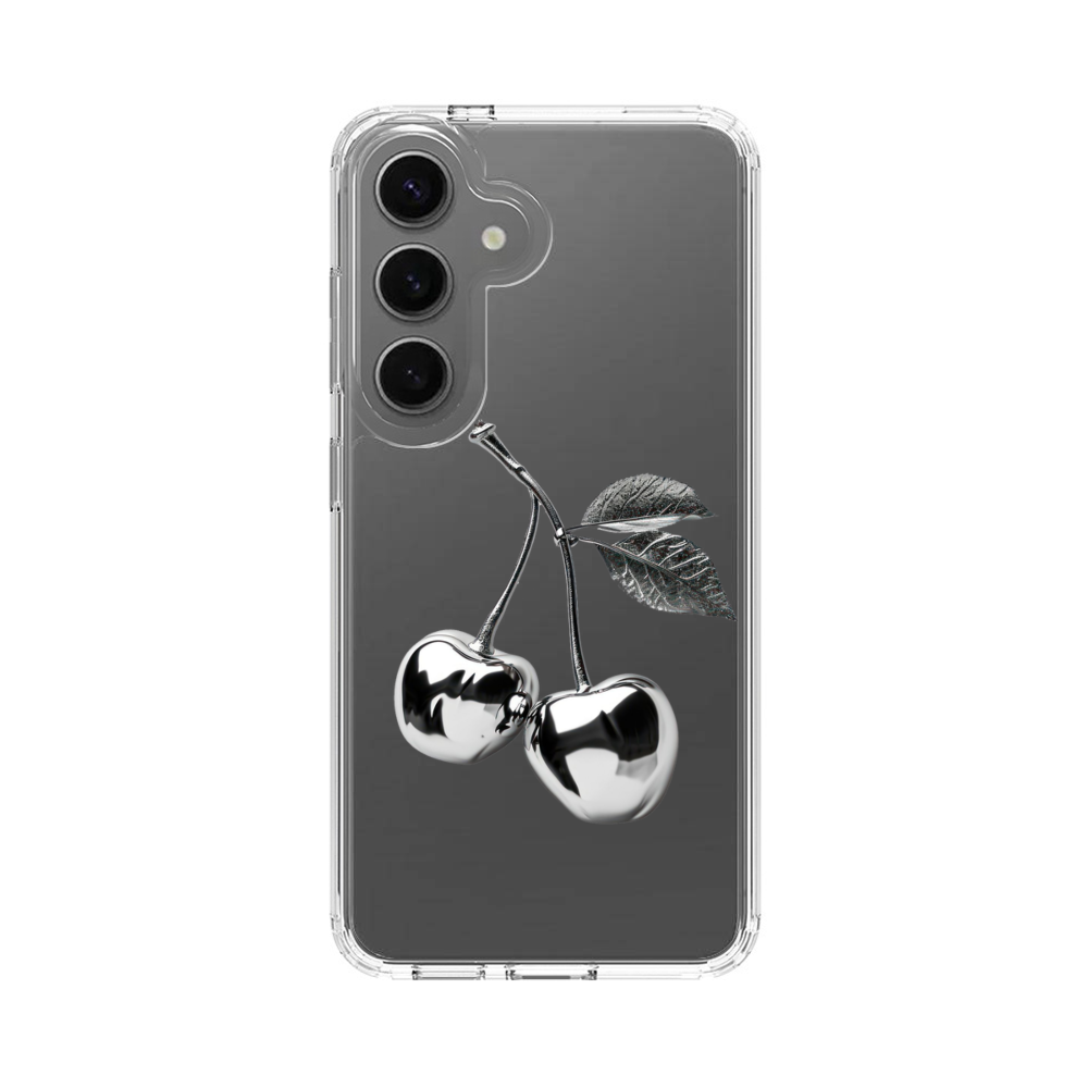 Silbere Kirsche Samsung Galaxy S25 Silikon Hülle● Sehr robust & langlebig