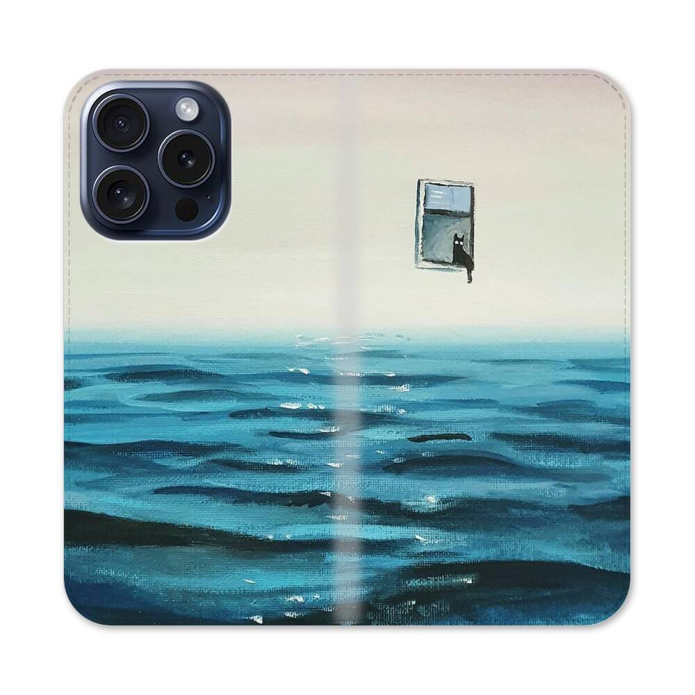 Katze auf dem Meer Apple iPhone 15 Pro Flip Case● Seitlich klappbar