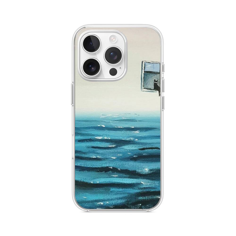 Katze auf dem Meer iPhone 15 Pro MagSafe‑kompatible Silikonhülle mit Kamera‑Kickstand● Sehr robust & langlebig