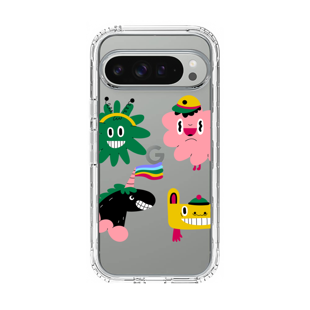 Vier Komische Cartoon Tiere Google Pixel 9 Pro XL Silikon Hülle● Sehr robust & langlebig