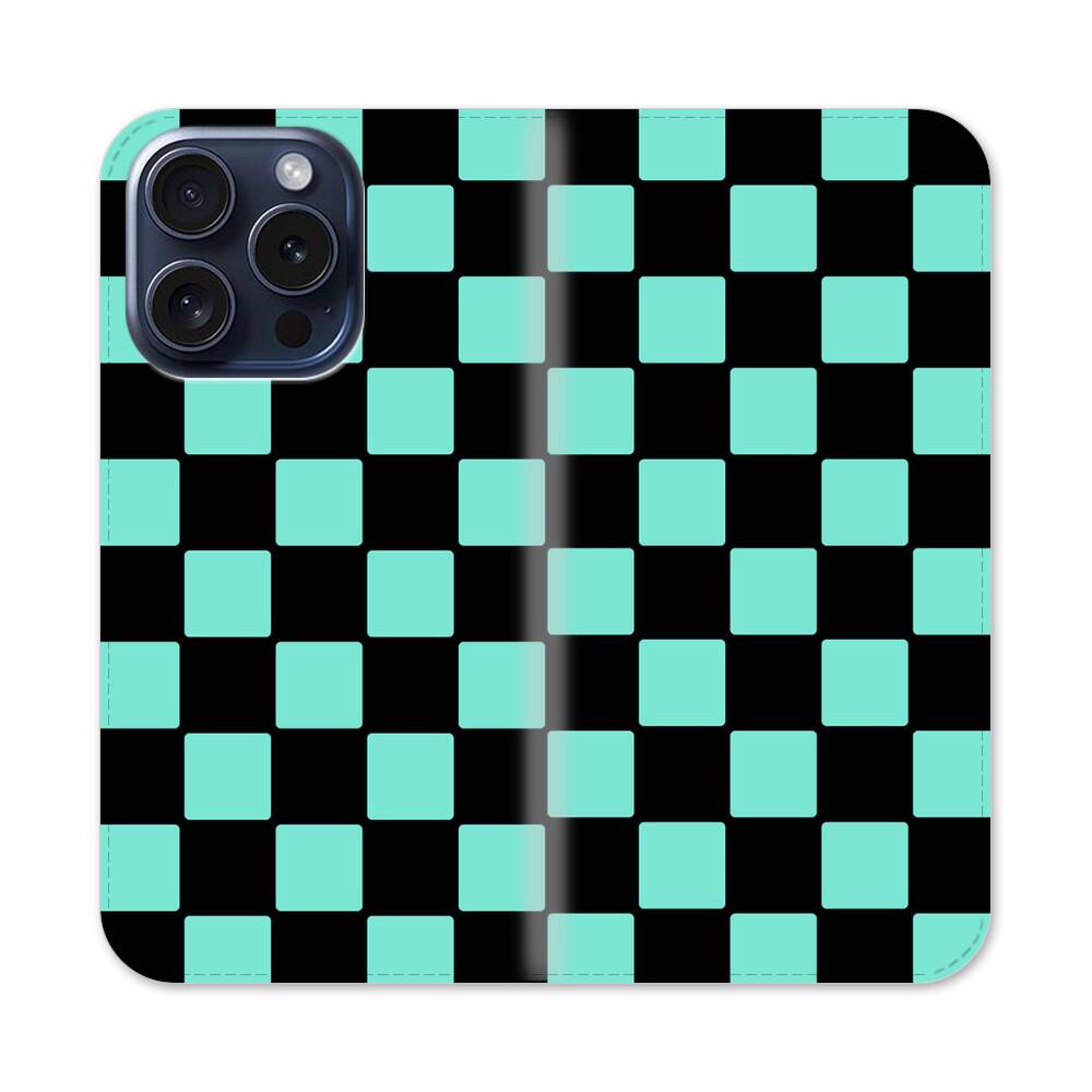 Grüne Und Schwarze Karos Apple iPhone 15 Pro Flip Case● Seitlich klappbar