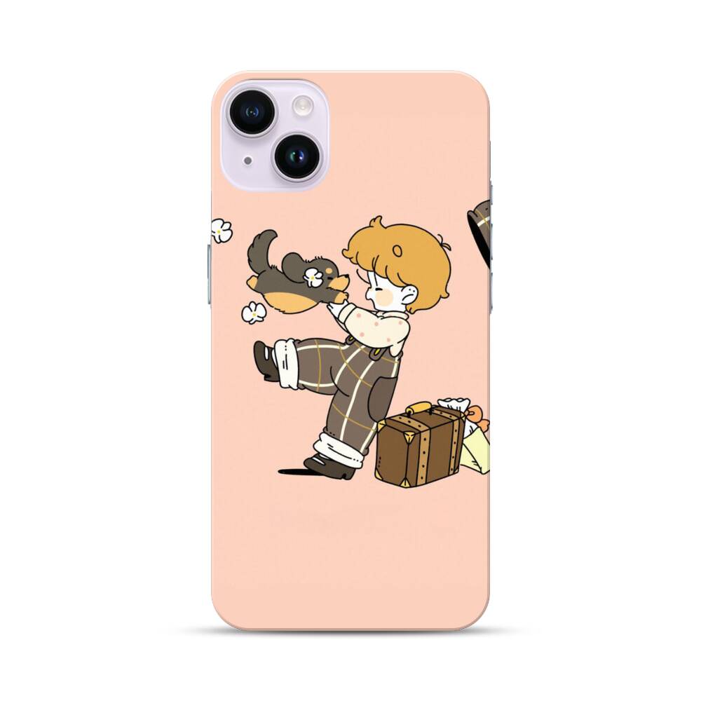 Junge mit Hündchen Apple iPhone 14 Plus Hülle● Rundum bedruckbar