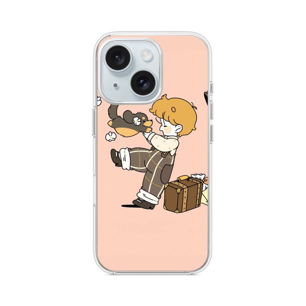 Junge mit Hündchen iPhone 15 MagSafe‑kompatible Silikonhülle mit Kamera‑Kickstand● Sehr robust & langlebig