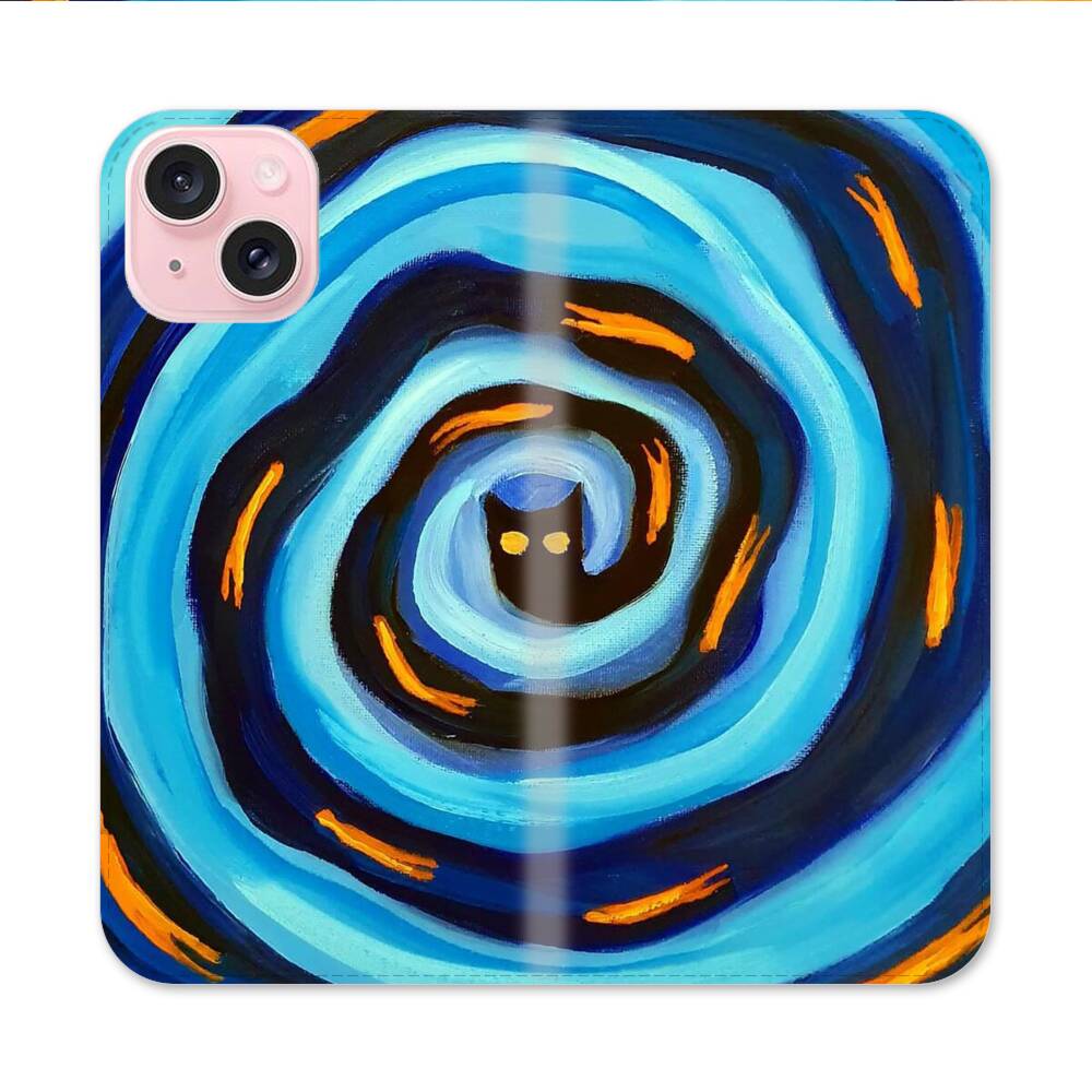 Katze im dem Wirbel Apple iPhone 15 Flip Case● Seitlich klappbar