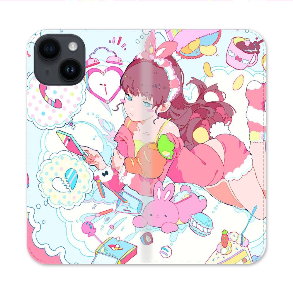 Mädchen mit Hasenohren Apple iPhone 14 Flip Case● Seitlich klappbar