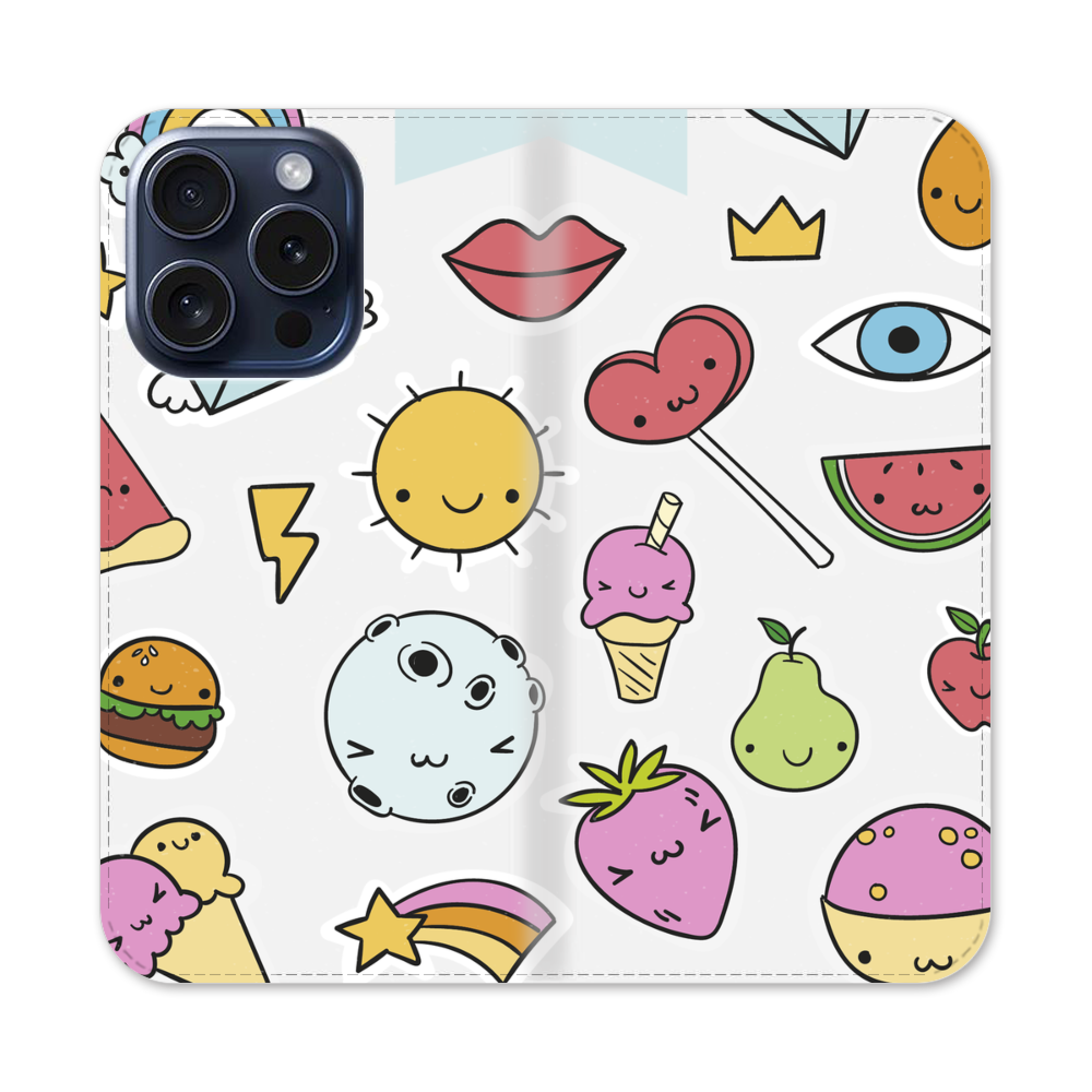 Verschiedene Obst Und Süßigkeiten Apple iPhone 15 Pro Flip Case● Seitlich klappbar