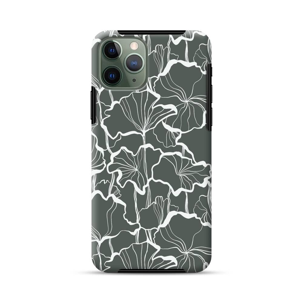 Graue Ginkgo Blätter Apple iPhone 11 Pro Hybrid Case● Rundum bedruckbar