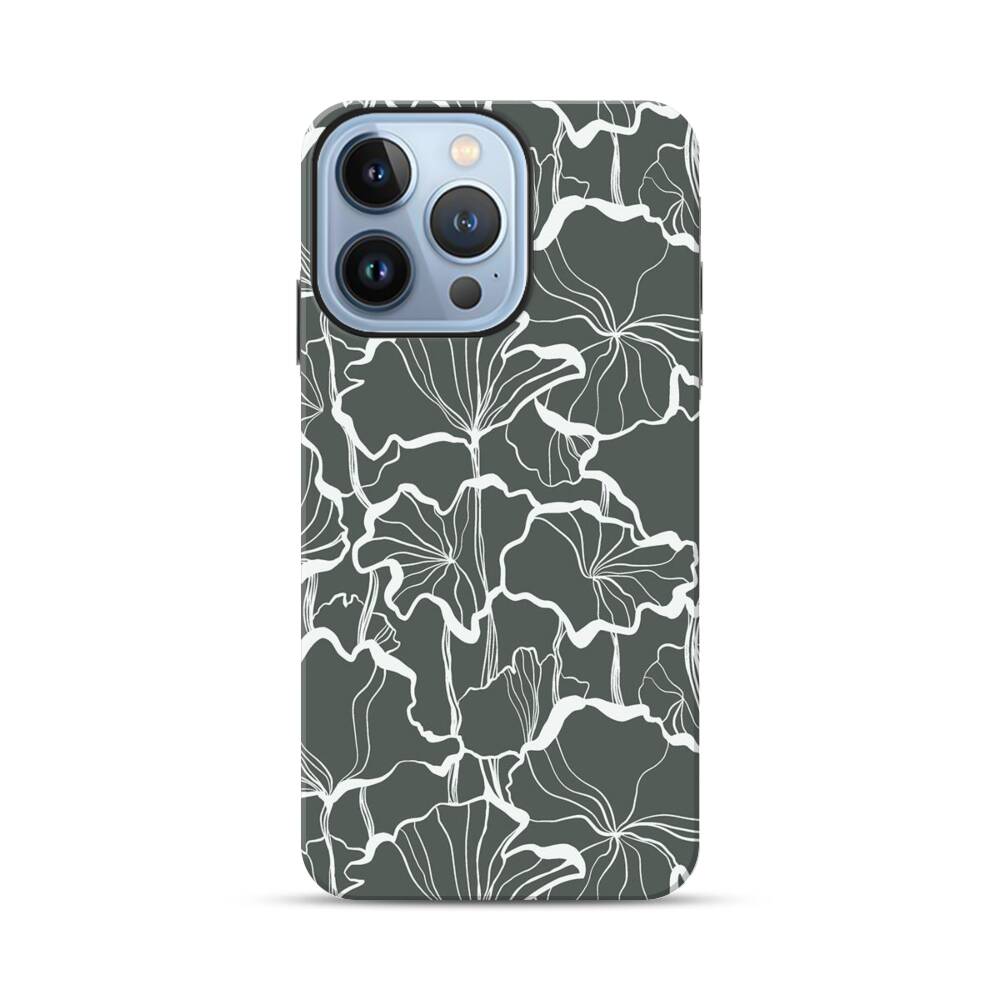 Graue Ginkgo Blätter Apple iPhone 13 Pro Max Hybrid Case● Rundum bedruckbar