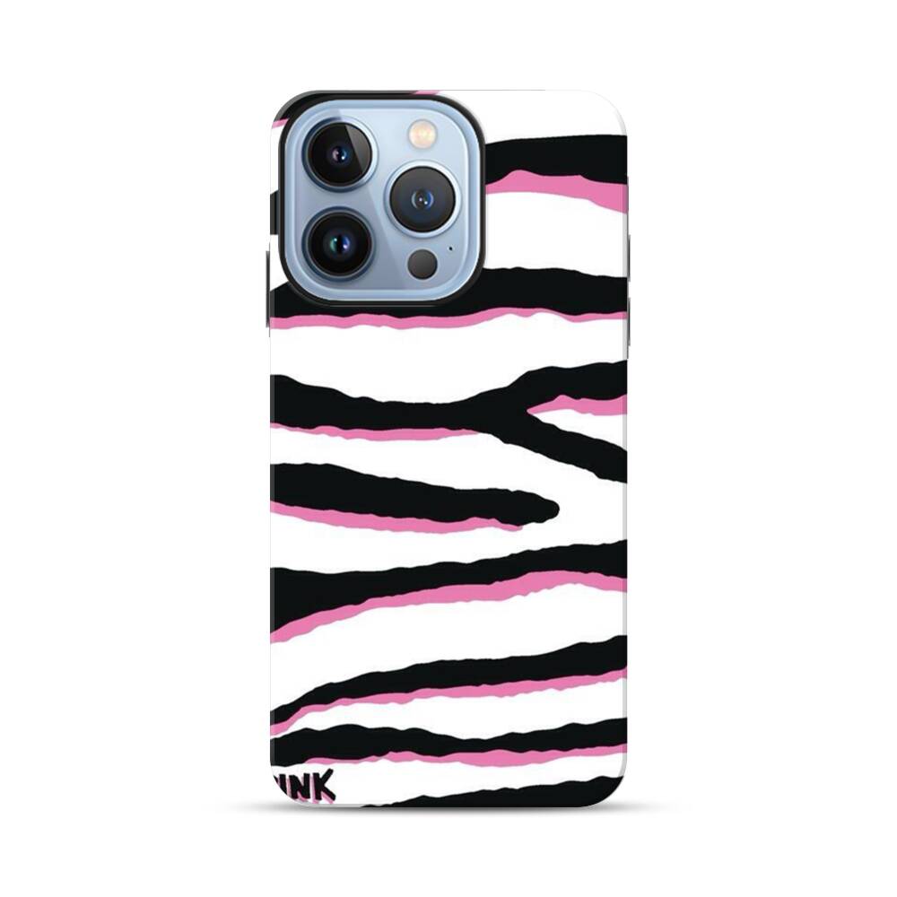 Schwarz pinke Zebrastreifen Apple iPhone 13 Pro Hybrid Case● Rundum bedruckbar