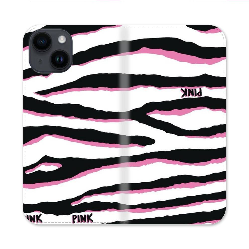 Schwarz pinke Zebrastreifen Apple iPhone 14 Flip Case● Seitlich klappbar