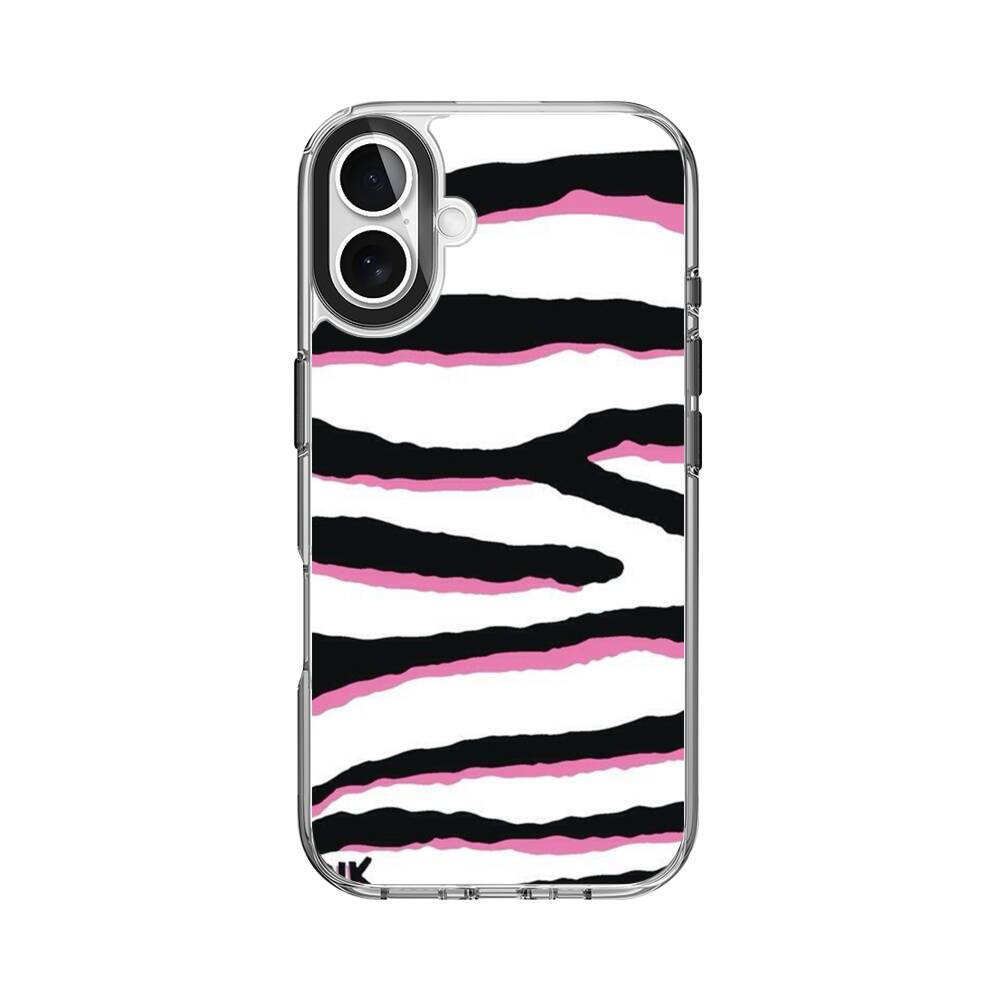 Schwarz pinke Zebrastreifen Apple iPhone 16 Plus Silikon Hülle● Sehr robust & langlebig