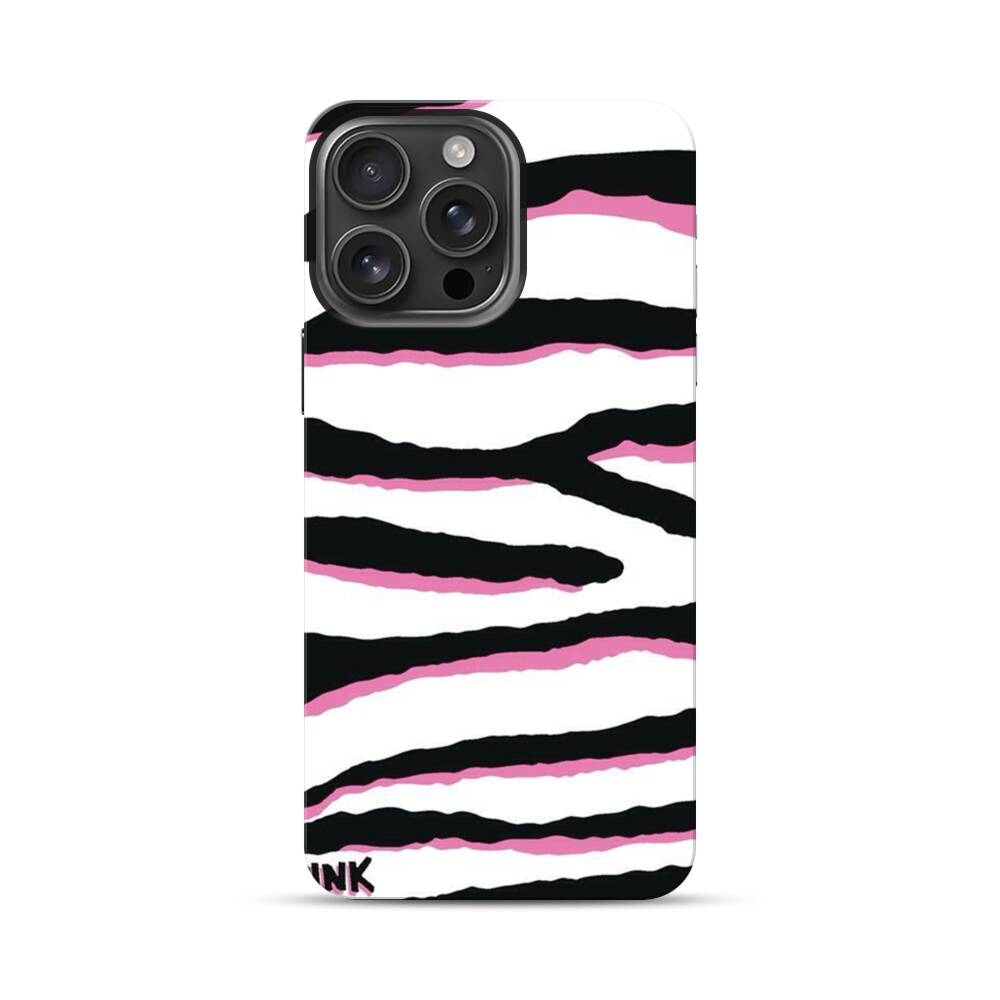 Schwarz pinke Zebrastreifen Apple iPhone 16 Pro Max Hybrid Case● Rundum bedruckbar