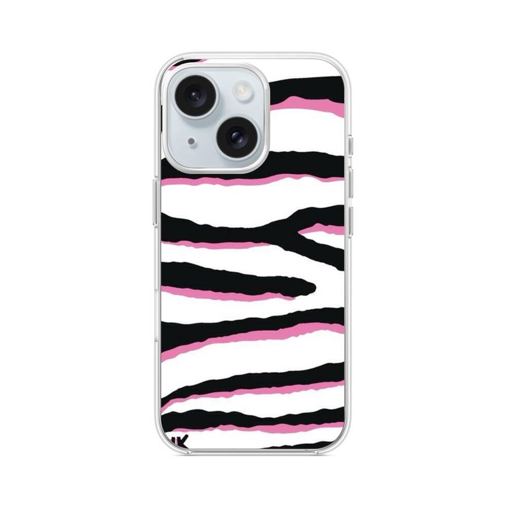 Schwarz pinke Zebrastreifen iPhone 14 MagSafe‑kompatible Silikonhülle mit Kamera‑Kickstand● Sehr robust & langlebig