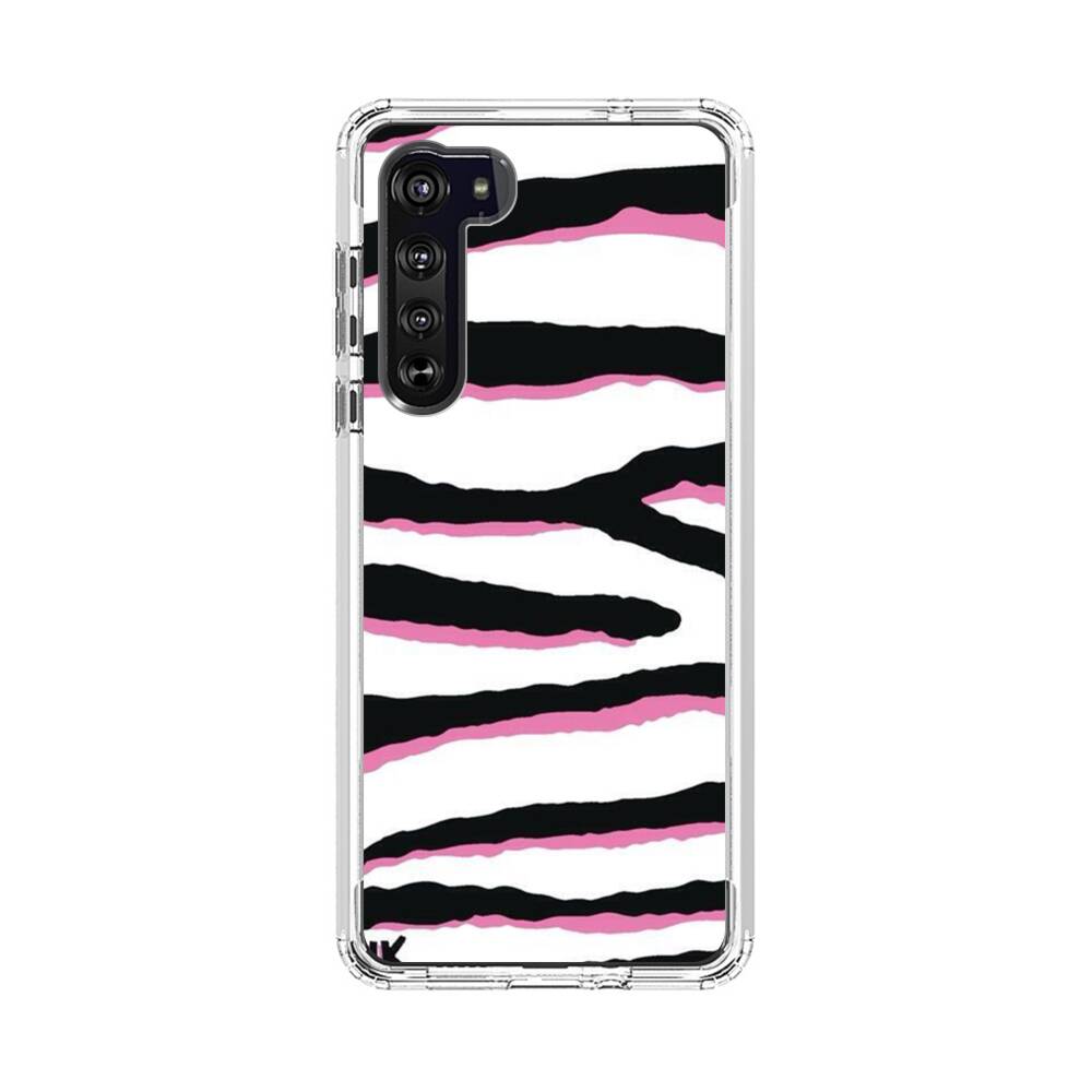 Schwarz pinke Zebrastreifen Motorola Edge Silikon Hülle● Sehr robust & langlebig