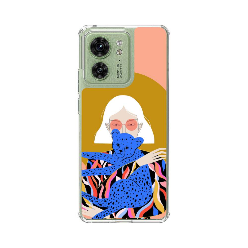 Coole Frau mit Katze Motorola Edge 40 Silikon Hülle● Sehr robust & langlebig