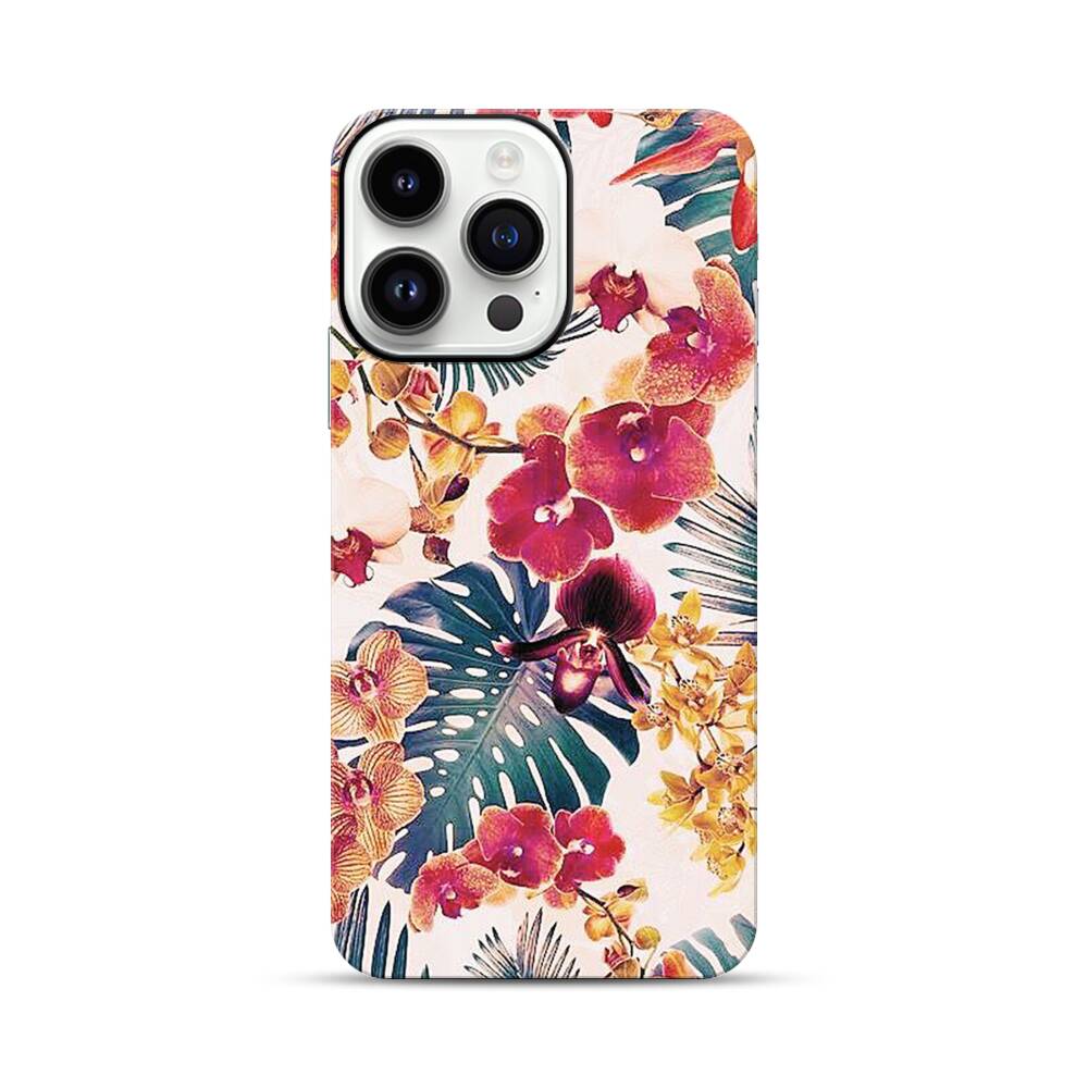 Blumenmuster Apple iPhone 14 Pro Max Hybrid Case● Rundum bedruckbar