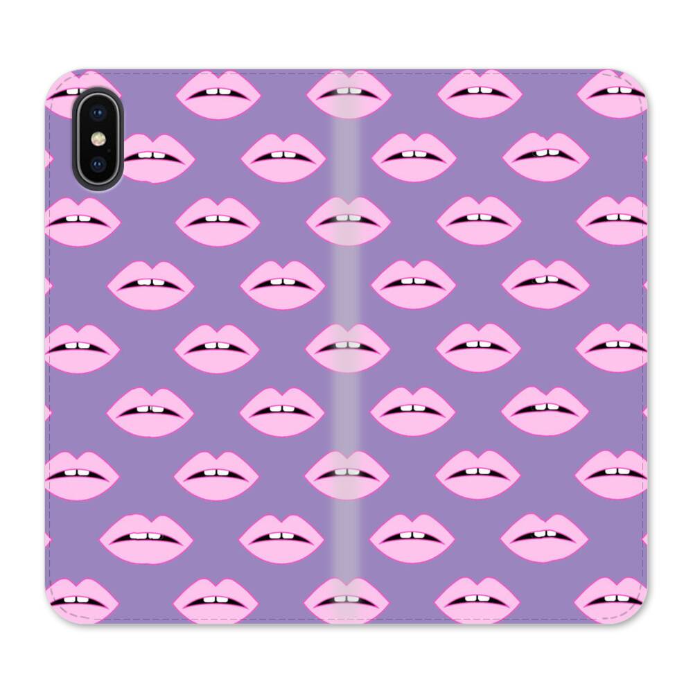 Pinke Lippen iPhone XS Wallet Leder Hülle● Seitlich klappbar