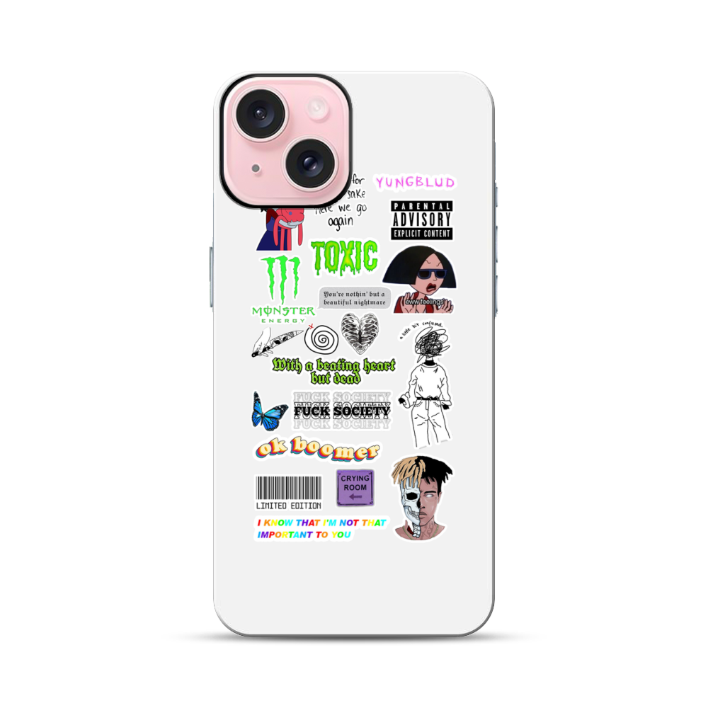 Coole Cartoon Sticker Apple iPhone 15 Hybrid Case● Rundum bedruckbar